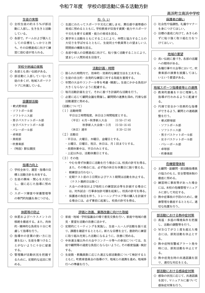 部活動活動予定表(2026年)各部の★印をクリックで日程表示されます。